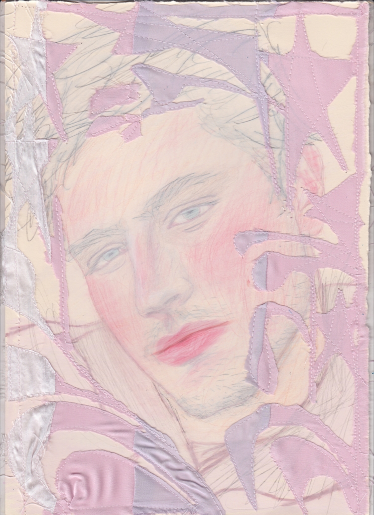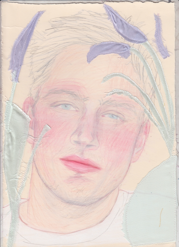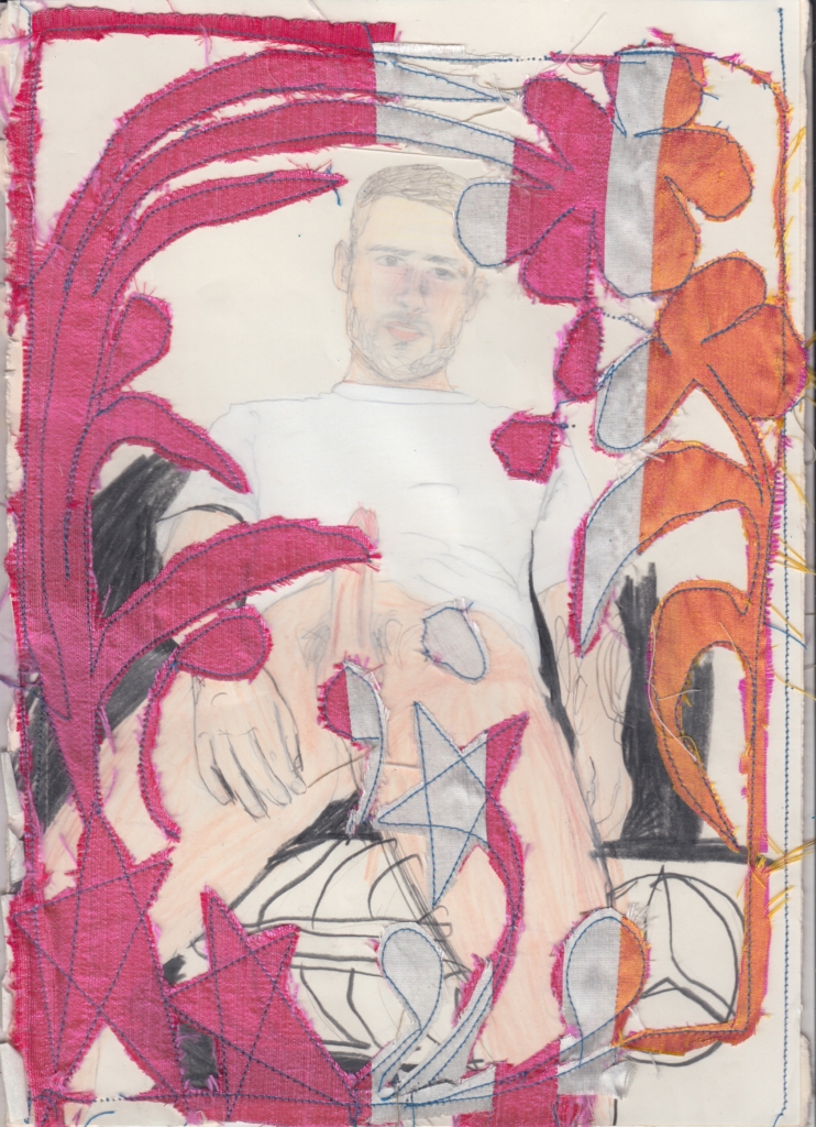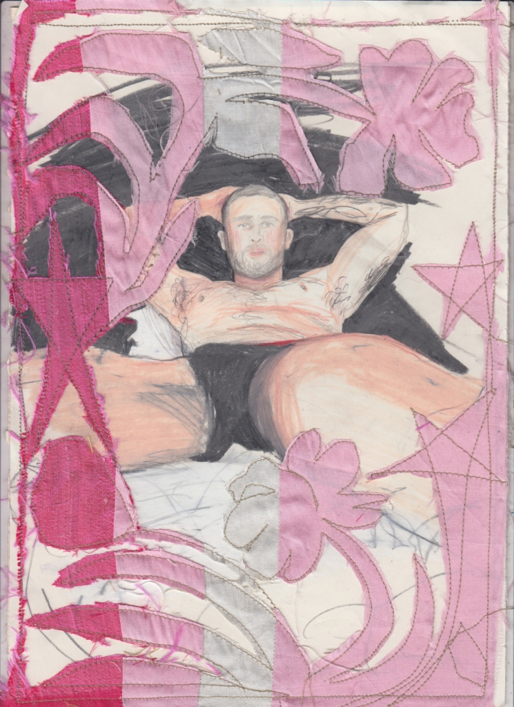 Il tuo lavoro incorpora tessuti, ricamo e collage — come scegli i materiali con cui lavori? In molte opere i tessuti assumono forme che evocano i genitali maschili: è una scelta istintiva o simbolica? Cosa rappresenta per te questa presenza ricorrente?