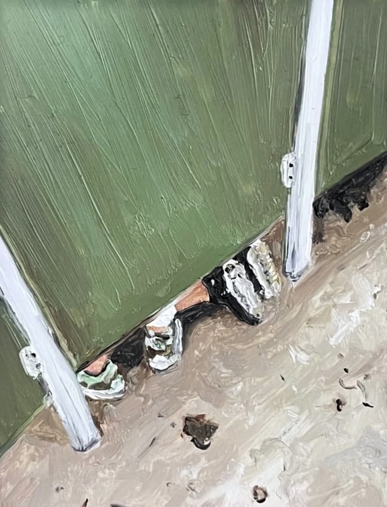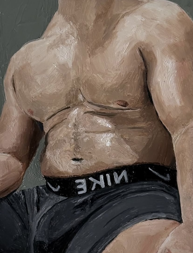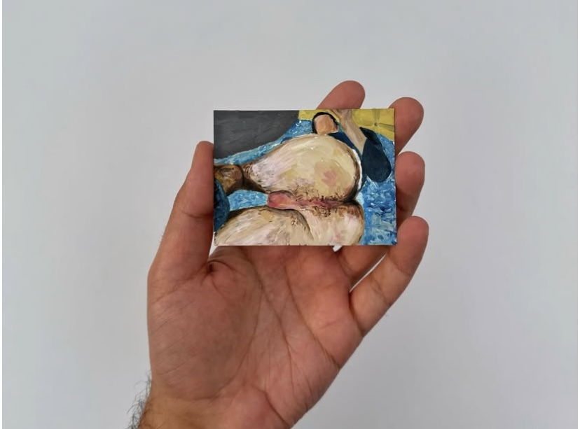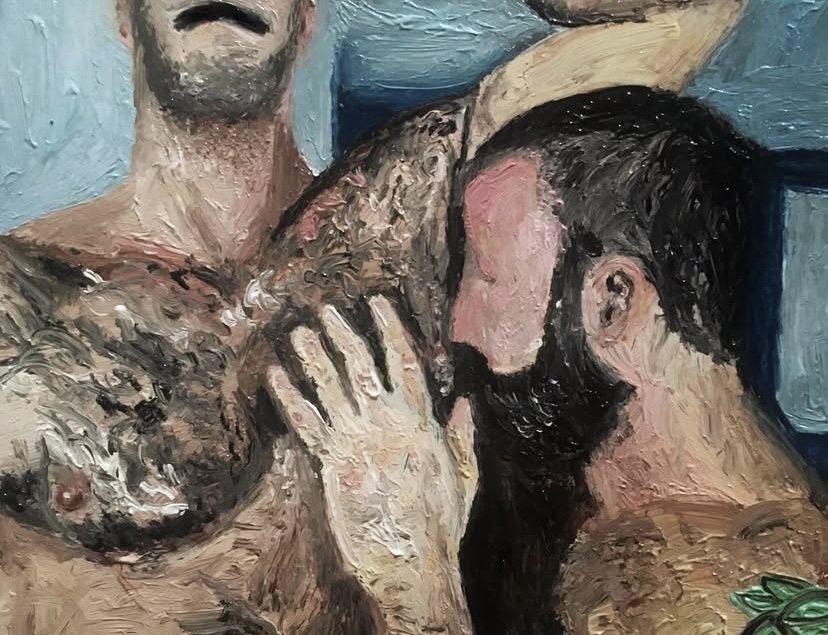 A Istanbul, dove la libertà è sempre una negoziazione e il corpo non è mai neutro, Chorus of Body dipinge in scala ridotta ciò che altrove viene urlato o censurato. I suoi oli su cartone sono frammenti intimi: corpi maschili senza volto, gesti sospesi, superfici che riflettono e disturbano lo sguardo. Qui l’identità non si dichiara, si contrae. Si trattiene. Resiste.